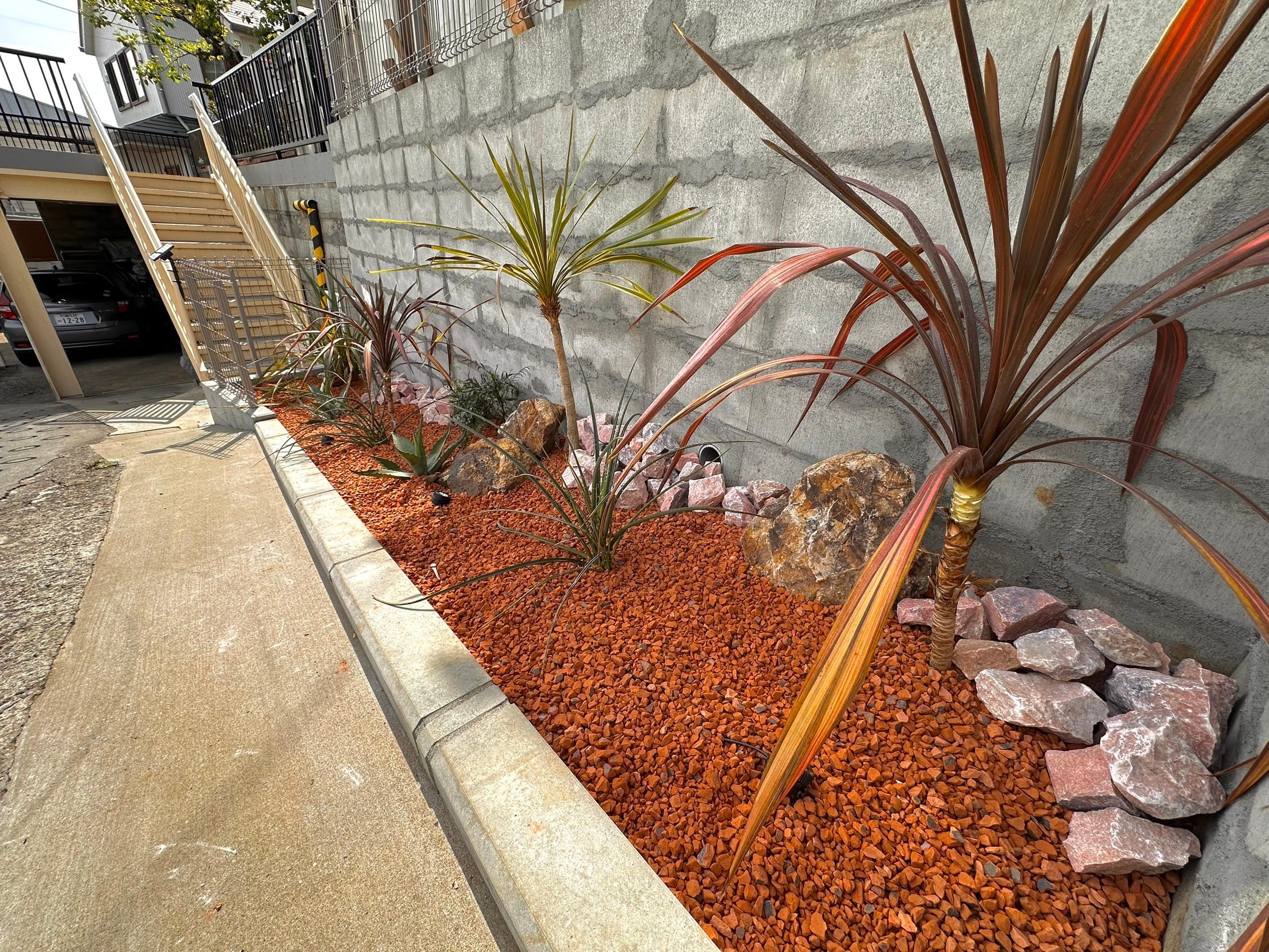 さて、久しぶりの投稿なのですが、お庭ではなく道路に面している所で、砂利だけ敷いてある空間をロックガーデンに変えました!がらりと雰囲気も変わり見栄えが良くなりました。