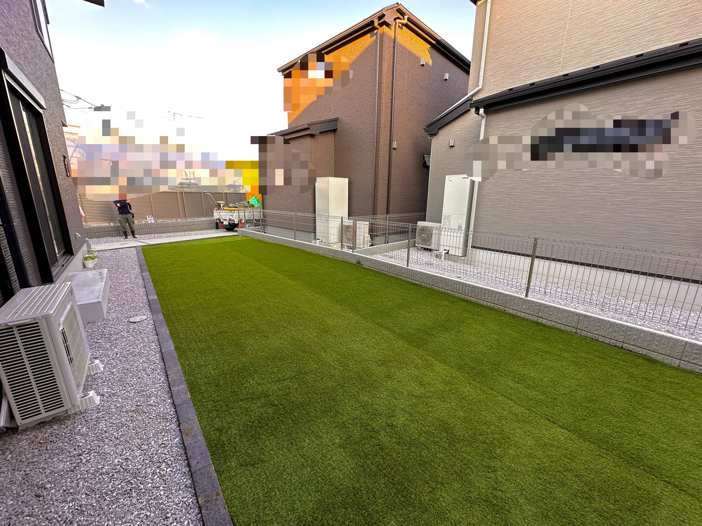 お庭の形状に合わせて人工芝を加工し、敷き詰めます。既存の人工芝に増設することもできます。